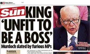 The Gruniad's political editor Patrick Wintour wrote the following analysis on the committee report and the split between Tory MPs and their Labour and solitary Lib Dem colleagues: 'David Cameron and his Conservative MPs now face the unappetising political prospect of appearing to defend Rupert Murdoch after four Conservative MPs on the committee refused to declare he was not a fit person to run an international company. Cameron is a genuine admirer of Murdoch's business skills, and like his Conservative colleagues on the culture select committee, is likely to argue there is no evidence that he misled the committee. He is also likely to agree with the Conservatives on the committee that it was going beyond its remit by commenting on Murdoch's status as a man capable of running an international company. Conservative MPs on the committee simply refused to accept the evidence existed to show that either Rupert Murdoch or his son James had deliberately misled the committee. The report did come perilously close to suggesting he did mislead, describing some of his evidence as "astonishing" and accusing him of "wilful blindness." Labour MPs, with the support of the sole Liberal Democrat MP, Adrian Sanders, argued that the scale of the corporate wrongdoing meant it was necessary to declare that Murdoch was "not a fit and proper person" to run an international company. This report will now be referred to the Commons, and that could present a further problem for the Conservatives. Cameron may feel deeply uneasy at the sight of his MPs being perceived to stand by Murdoch in any way, narrow or wide. Ed Miliband was already preparing to make hay. John Whittingdale, the Conservative chairman of the committee, and Louise Mensch, a prominent Conservative on the committee, insisted that the motion in front of the Commons will be about the individuals, including Colin Myler, the editor of the New York Daily News, who they say has misled parliament. It will be easy for Conservative whips to agree to vote for that motion. It will be problematic if an amendment is tabled suggesting [Murdoch] is not fit to run an international company. But that is a little way down the track in the next parliamentary session. There will also be a further subsidiary debate about parliament can do to punish those that have been in contempt of the House. It is known for instance that the Speaker John Bercow feels strongly that some kind of suitable punishment has to be devised. At present the punishment includes being asked to apologise to MPs at the bar of the House.'